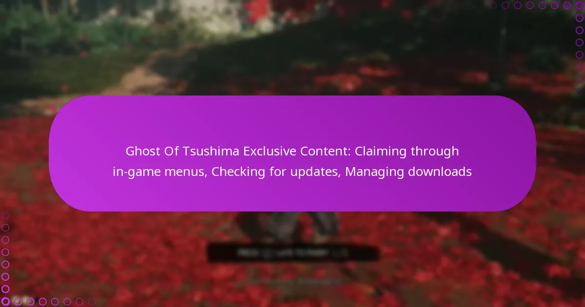 Ghost of Tsushima provides players with exclusive content, such as unique missions and special weapons, enhancing the overall gameplay experience. To claim this content, simply navigate through the in-game menus and ensure you have an active internet connection for updates. Regularly checking for updates through the game’s menus or console settings is essential to access the latest features and improvements.
